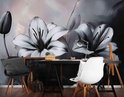 Transformeer je slaapkamer met onze 3D Bloemen Fotobehang in Wit/Zwart