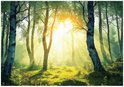 WALLARENA - Fotobehang - 350x250 cm - Fototapete van een bos met zon, geschikt voor keuken, slaapkamer en woonkamer