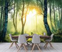 WALLARENA - Fotobehang - 300x210 cm - 3D bos landschap met bomen en zon voor slaapkamer en woonkamer