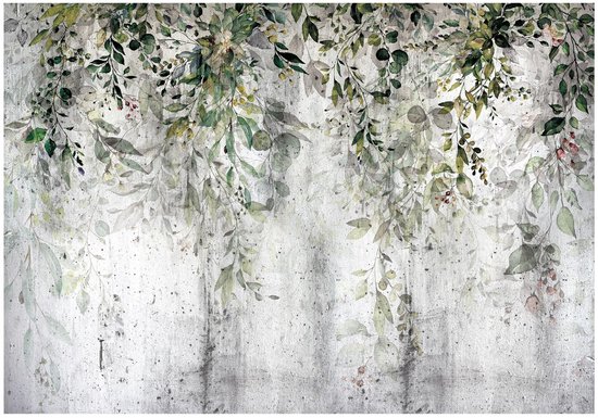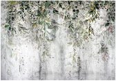 WALLARENA - Fotobehang - 350x250 cm - groene bladeren natuur beton voor slaapkamer en woonkamer