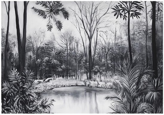 WALLARENA - Fotobehang - 350x250 cm - zwart-wit bos natuur voor slaapkamer en salon, vliesbehang
