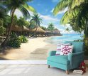 WALLARENA - Fotobehang - 400x280 cm - 3D afbeelding van een paradijselijke strand met palmen en zee voor slaapkamer of woonkamer