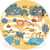 WallCircle® Cercle mural 140x140 cm - Cercle mural Montgolfière - Lion - Aquarelle - Safari - Animaux - Chambre enfant - Chambre de bébé - Décoration murale cercle salon - Décoration murale chambre - Accessoires décoration chambre - Tableaux ronds