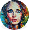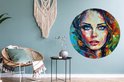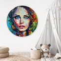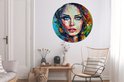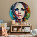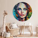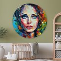 Cercle mural intérieur - Visage - Femme - Peinture à l'huile - Coloré - Art - Décoration murale ronde