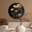 WallCircle® Cercle Mural 60x60 cm - Cercle Mural Bouquet - Fleurs - Clair - Zwart - Décoration murale salon - Décoration murale chambre - Accessoires de décoration de chambre - Tableaux ronds