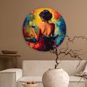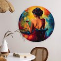Cercle mural intérieur - Vin - Femme - Atmosphérique - Coloré - Décoration murale ronde