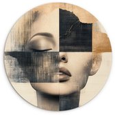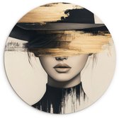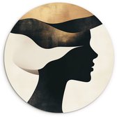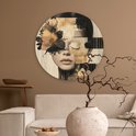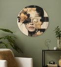 Cercle mural intérieur - Visage - Fleurs - Zwart - Femme - Décoration murale ronde