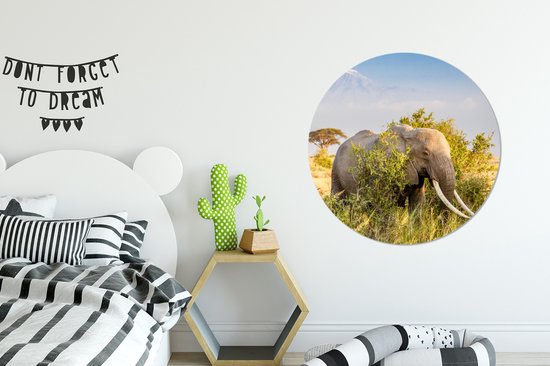 WallCircle - Cercle mural ⌀ 90 - Éléphant - Animaux - Herbe - Vert - Berg - Tableaux ronds salon - Assiette murale ronde - Décoration murale cercle - Décoration chambre intérieur - Décoration murale cercle mural - Accessoires de maison