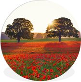 Wall Circle - Wall Circle Indoor - Coquelicots - Champ de Fleurs - Soleil - ⌀ 120 cm - Décoration murale - Peintures Ronds XXL