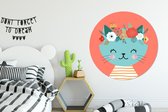 WallCircle - Wall Circle - Wall Circle Indoor - Chat - Couronne de Fleurs - Été - 120x120 cm - Décoration murale - Peintures Ronds XXL