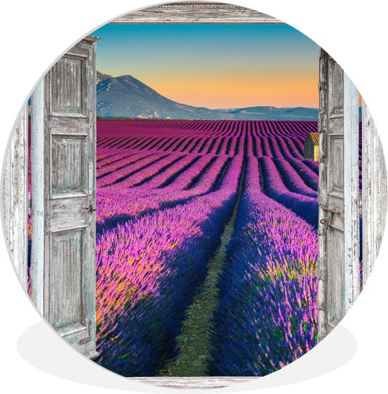 WallCircle - Cercle mural - Cercle mural intérieur - Lavande - Soirée - Vue - Fleurs - 120x120 cm - Décoration murale - Peintures ronds XXL