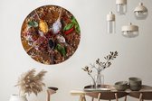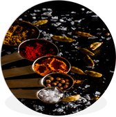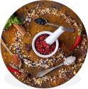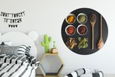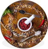 WallCircle - Cercle mural - Cercle mural d'intérieur - Mortier - Herbes - Cuillères - Épices - Marron - Poivre - 120x120 cm - Décoration murale - Peintures ronds XXL