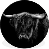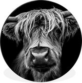 WallCircle - Cercle mural - Cercle mural - Highlander écossais - Animaux - Marron - Vache - Zwart - Wit - Nature - Aluminium - Dibond - 120x120 cm - Intérieur et extérieur XXL