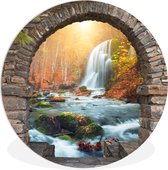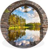 WallCircle - Cercle mural - Cercle mural intérieur - Automne - Brouillard - Water - Paysage - 120x120 cm - Décoration murale - Peintures ronds XXL