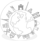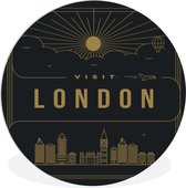 WallCircle - Cercle mural - Cercle mural intérieur - Motif d'illustrations de la ville de Londres - noir et blanc - 90x90 cm - Décoration murale - Peintures ronds