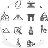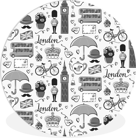 Cercle mural intérieur - Motif d'illustrations de la ville de Londres - noir et blanc - Décoration murale ronde