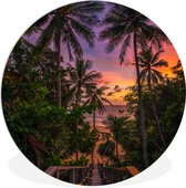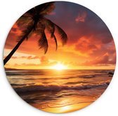 WallCircle - Cercle mural - Cercle mural intérieur - Plage - Coucher de soleil - Palmiers - 30x30 cm - Décoration murale - Peintures ronds