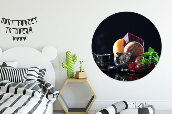 Cercle mural intérieur - Rustique - Fruit - Fromage - Table - Nature morte - Décoration murale ronde