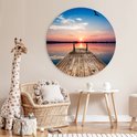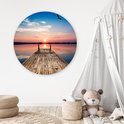 WallCircle - Cercle mural - Cercle mural - Jetée - Water - Coucher de soleil - Horizon - Plastique - Décoration murale - Décoration Décoration murale ronde - 140x140 cm - Tableau rond - Tableau rond