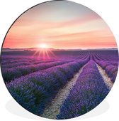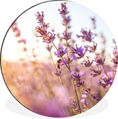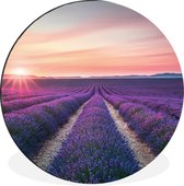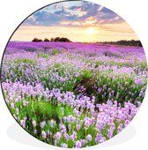 WallCircle - Cercle Mural - Cercle Mural - Lavande - Coucher de Soleil - Fleurs - Violet - Aluminium - Dibond - 140x140 cm - Intérieur et Extérieur