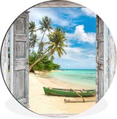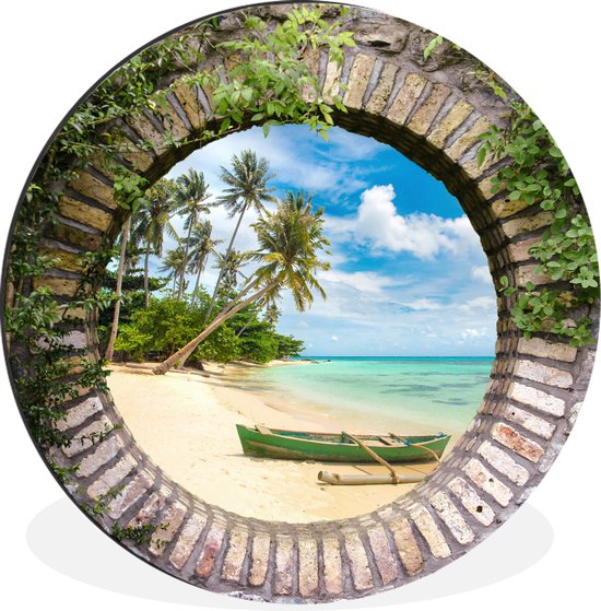 WallCircle - Cercle Mural - Cercle Mural - Plage - Palmier - Transparent - Canoë - Aluminium - Dibond - 120x120 cm - Intérieur et Extérieur XXL