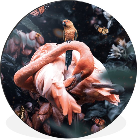 WallCircle - Cercle mural - Cercle mural - Plantes - Flamingo - Jungle - Aluminium - Dibond - ⌀ 90 cm - Intérieur et Extérieur