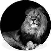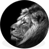 Cercle mural - Cercle mural - Lion sur fond noir en noir et blanc - Aluminium - ⌀ 140 cm - Intérieur et Extérieur