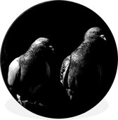 Cercle mural - Cercle mural - Deux beaux pigeons sur fond noir - noir et blanc - Aluminium - Dibond - 140x140 cm - Intérieur et Extérieur