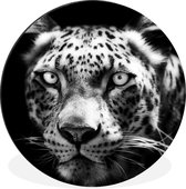 Close-up léopard persan sur fond noir en noir et blanc Cercle mural aluminium ⌀ 140 cm