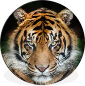 WallCircle - Cercle mural - Cercle mural - Tigre de Sumatra sur fond noir - Aluminium - Dibond - 140x140 cm - Intérieur et Extérieur