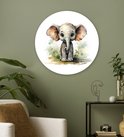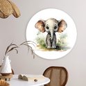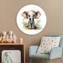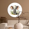 Cercle mural intérieur - Éléphant - Aquarelle - Animaux sauvages - Wit - Décoration murale ronde