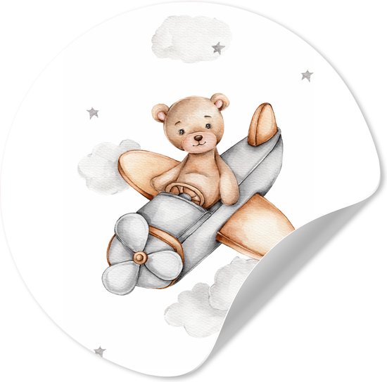 Papier peint cercle autocollant - Ours - Avion - Etoiles - Enfants - Salon - Chambre