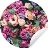 Papier peint cercle autocollant - Rose - Fleurs - Design - Pastel - Salon - Chambre