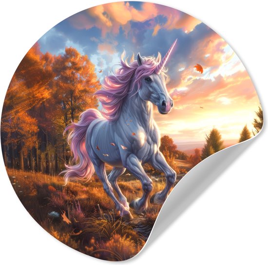 Papier peint cercle autocollant - Licorne - Animal de conte de fées - Nature - Filles - Salon - Chambre à coucher