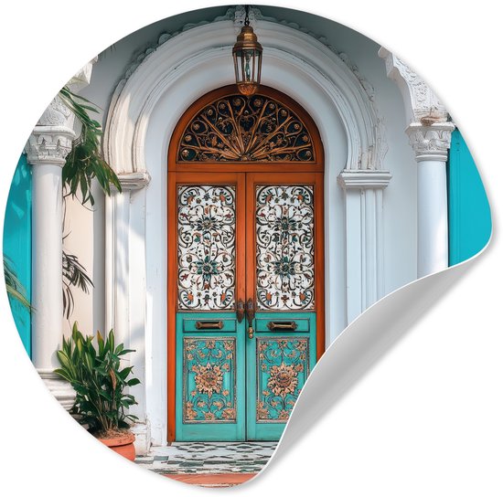 Papier peint autocollant rond - Colonnes - Orné - Porte - Blauw - Salon - Chambre