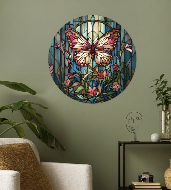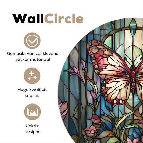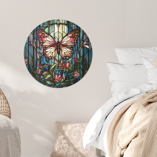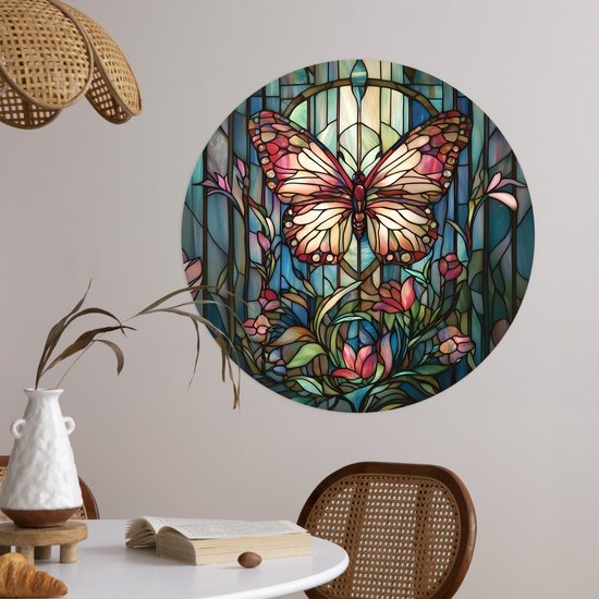 WallCircle® - Papier peint cercle 80x80 cm - Stickers muraux Papillon - Rose - Fleurs - Fleurs - Cercle mural salon - Cercle mural chambre - Décoration de chambre autocollante - Accessoires de Décoration murale