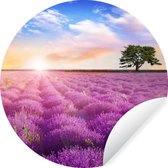 Pensez-vous que le tournesol est la plus belle fleur de l'univers ? Alors ce cercle de papier peint est parfait voor jou! L'image montre un champ de tournesols avec un soleil bas qui brille à travers les tournesols.