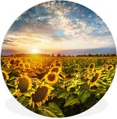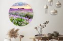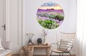 Cercle mural intérieur - Fleurs - Colline - Paysage - Coucher de soleil - Décoration murale ronde