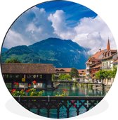 WallCircle - Peinture - Le Cervin Suisse Derrière Une Pinède Et - Multicolore - 90 X 90 Cm