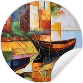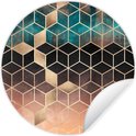WallCircle - Stickers muraux - Cercle de papier peint - Abstrait - Cube - Or - Motifs - Luxe - 120x120 cm - Cercle mural - Autocollant - Papier peint autocollant rond XXL