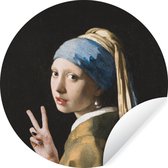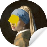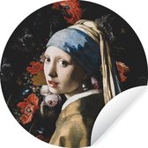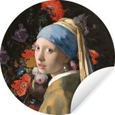 WallCircle - Stickers muraux - Cercle de papier peint - Fille à la boucle d'oreille en perle - Fleurs - Vermeer - Pastel - Oeuvre d'art - Peinture - Maîtres anciens - 80x80 cm - Cercle mural - Autocollant - Autocollant de papier peint rond