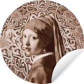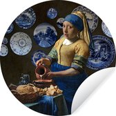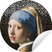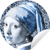 WallCircle - Stickers muraux - Cercle de Papier Peint - Fille avec une Boucle d'Oreille Perle - Johannes Vermeer - Bleu de Delft - 50x50 cm - Cercle Mural - Auto-Adhésif - Autocollant Rond de Papier Peint