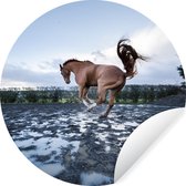WallCircle - Stickers muraux - Cercle de papier peint - Paarden - Water - Boue - 50x50 cm - Cercle mural - Autocollant - Autocollant papier peint rond