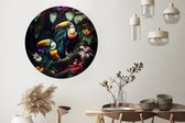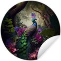 WallCircle - Stickers muraux - Cercle de papier peint - Paon - Jungle - Fleurs - Nature - 120x120 cm - Cercle mural - Autocollant - Papier peint autocollant rond XXL