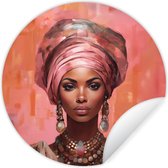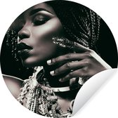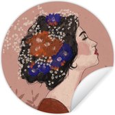 WallCircle - Stickers muraux - Cercle de papier peint - Portrait - Femme - Roses - Abstrait - Zwart et blanc - 80x80 cm - Cercle mural - Autocollant - Autocollant de papier peint rond