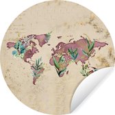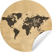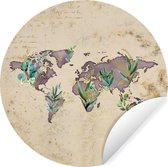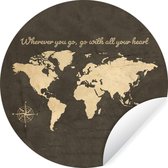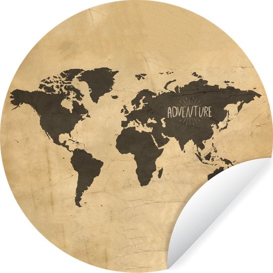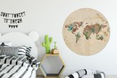 WallCircle - Stickers muraux - Cercle de papier peint - Wereldkaart - Marron - Vintage - ⌀ 120 cm - Cercle mural - Autocollant - Papier peint autocollant rond XXL