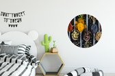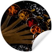 Cercle de papier peint autocollant - Herbes - Cuillère - Épices - Zwart - Italien - Salon - Chambre