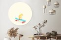 Papier peint autocollant cercle - Poussin - Jaune - Skateboard - Blauw - Animaux - Salon - Chambre