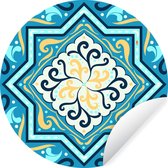 WallCircle - Stickers muraux - Cercle Papier Peint - Poussin - Jaune - Skateboard - Blauw - Animaux - 140x140 cm - Cercle Mural - Auto Adhésif - Sticker Papier Peint Rond
