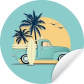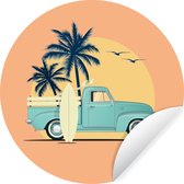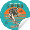 WallCircle - Stickers muraux - Cercle Papier Peint - Vintage - Surf - Planche de Surf - 80x80 cm - Cercle Mural - Auto Adhésif - Autocollant Rond Papier Peint